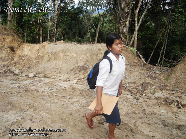 saya saja dulu harus jalan kaki 3 km, tiap hari ke sekolah, brangkat jam 7 pagi masuk jam 8,..dan teman dari ‘huta’ yang lain rata-rata berjalan 10 km,…kalau ditanya berangkat jam berapa>?? jawabnya ada yang jam 5 ada yang jam 6.