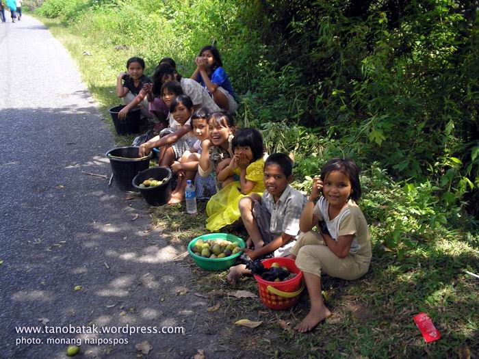 Menjelang Unte Mungkur dipinggir jalan kami melihat anak-anak kecil berjejer seraya menyapa “mangga tulang … mangga”. Mereka menawarkan mangga dagangan mereka yang ditempatkan didalam ember plastik dan kantongan plastik. Mereka cukup agresif memberi keyakinan pada kami untuk membeli mangganya itu. Saya melihat mangga itu agak kecil dan kulitnya kurang bagus, sebagian masih mengkal. Karena semangat dan kelucuan yang mereka lakonkan, saya jadi tertarik membeli dagangan mereka itu.