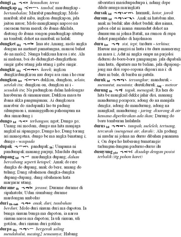 Binsar Parningotan Napitupulu kembali mengirimkan karya susunan kata (kamus) bagian ke limabelas dan cara penulisannya dalam aksara batak, sebagai bahan pelajaran bahasa dan surat Batak. Semoga bermanfaat.